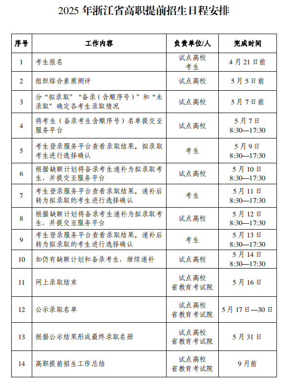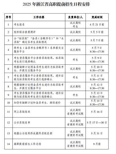 2025年高职提前招生日程安排如下,请大家认真阅读并在规定时间进行相关操作。